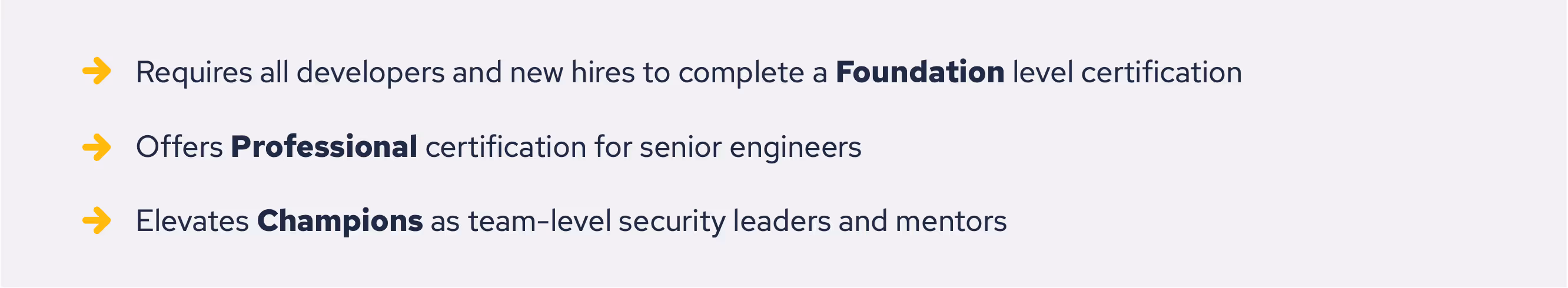 "La red de campeones de seguridad se ha considerado un control clave de ese programa. Así que para que los productos avanzaran en este programa, tuvimos que tomarnos realmente en serio el papel de tener a alguien como campeón de seguridad y también proporcionarle una sólida formación en seguridad."